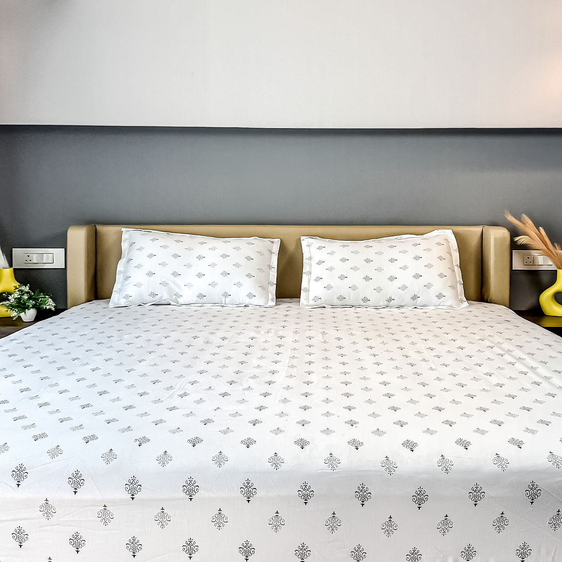 Tanabana by HOL – 100% Organic Cotton Bedsheet with 2 Pillow Covers | King | White | 250 TC
