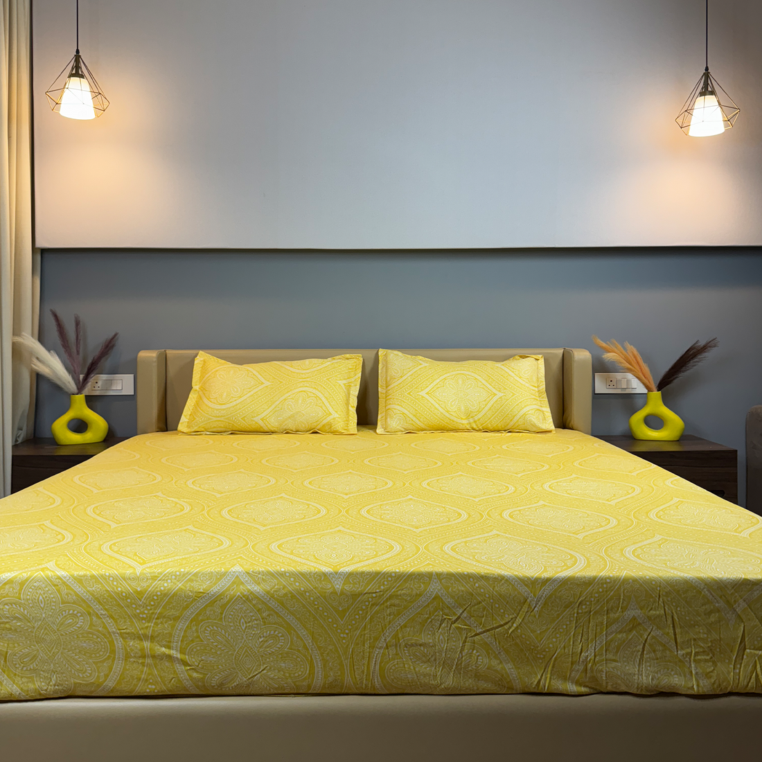 Tanabana by HOL – 100% Organic Cotton Bedsheet with 2 Pillow Covers | King | Yellow | 250 TC