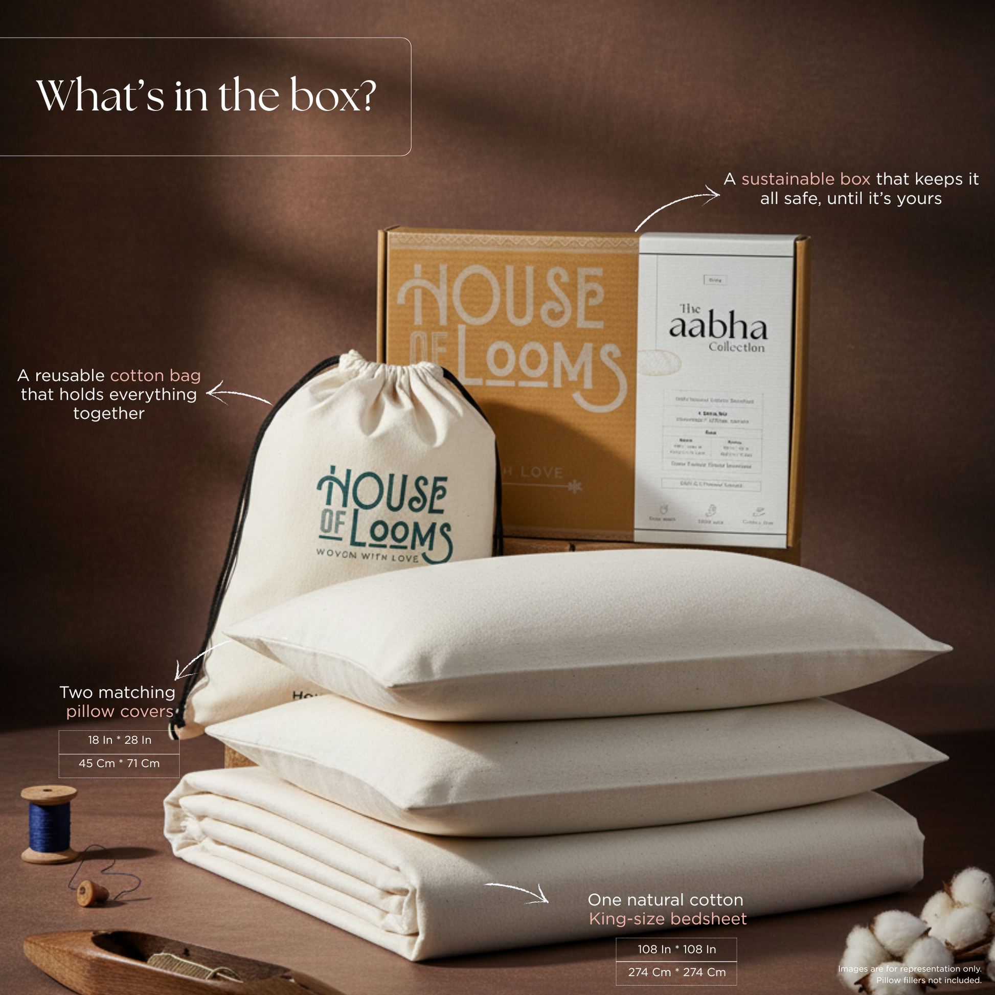 Versatile & Stylish: Whether you're refreshing your room or looking for everyday bedding, this king-size bedsheet set blends timeless elegance with organic comfort, making it ideal for any bedroom décor.